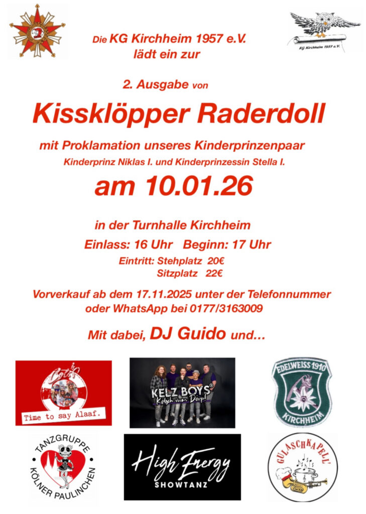 - Karneval 2026 Raderdoll: KG Kirchheim 1957 eV