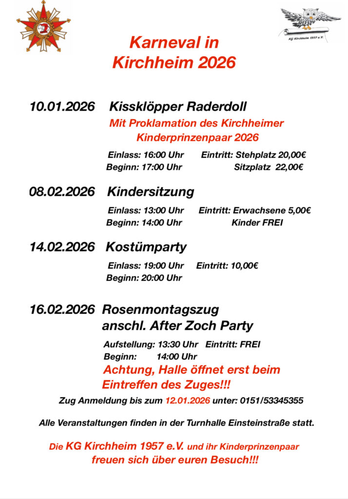 - Karneval 2026 Programm: KG Kirchheim 1957 eV